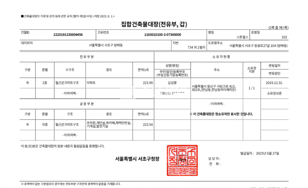 | 1층 | 아파트 | 아파트 | 492.35㎡ 148.94평 |