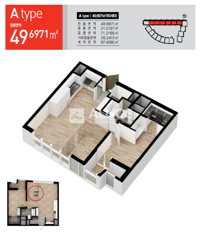공급 71.2168㎡ 22평 / 전용 49.6971㎡ 15평 (전용률 70%) 평